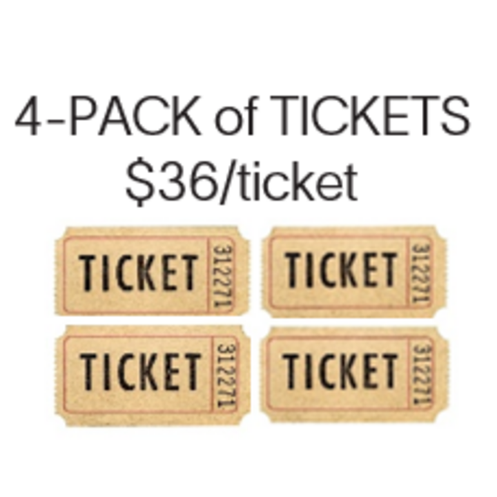 - 4-pack Tickets Early Bird - $144 ($36 per ticket)